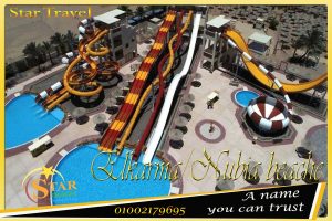 يقع منتجع نوبيا أكوا بيتش في الغردقة في منطقة البحر الأحمر على بعد 17 كم من نيو مارينا ويوفر مسبح خارجي مفتوح على مدار السنة ومنطقة شاطئ خاص، ويوفر المنتجع مركز سبا وساونا، كما يمكن للضيوف الاستمتاع بتناول وجبة في المطعم، وتتوفر مواقف خاصة للسيارات في الموقع مجاناً. تحتوي جميع الغرف على تلفزيون بشاشة مسطحة وتضم بعض الوحدات منطقة جلوس حيث يمكن للضيوف الاسترخاء فيها بعد يوم حافل بالنشاط، وتتميز بعض الغرف بإطلالات على المسبح أو الحديقة، وتم تجهيز جميع الغرف مع حمام خاص مجهز بحوض استحمام أو دش، وتتوفر أيضاً لوازم استحمام مجانية ومجفف شعر من أجل راحتك. يوفر المنتجع أيضًا 5 مطاعم انتقائية تقدم الأطباق اللبنانية والروسية والإيطالية، ويقع المطعم الصيني في واجهة الفندق. يمكن الاستمتاع بمجموعة من الأنشطة في الموقع أو في المناطق المحيطة به بما في ذلك صيد الأسماك وركوب الدراجات، كما يتوفر ملعب للأطفال في الموقع. يتوفر مكتب استقبال يعمل على مدار 24 ساعة وصراف آلي وخدمة مجالسة الأطفال وتصفيف الشعر في مكان الإقامة، يقع أقرب مطار وهو مطار الغردقة الدولي على بعد 18 كم من مكان الإقامة.